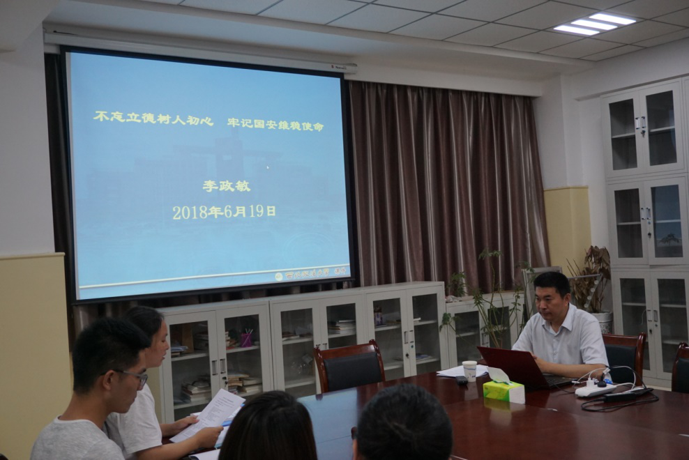 6月19日,反恐怖主义法学院研究生党支部在永利集团北区研究生综合楼一楼民宗会议室开展了“不忘初心,牢记使命”主题教育讲座活动,党委书记李政敏为研究生支部全体作了题为“不忘立德树人初心,牢记国安维稳使命”的报告。研究生党支部全体党员和入党积极分子到场参加。