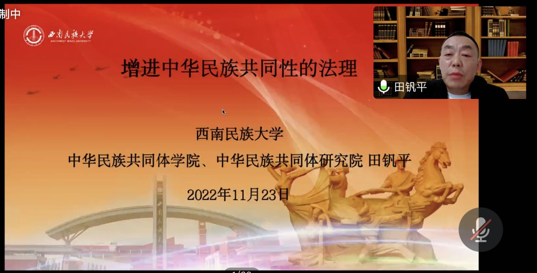 为深入学习二十大精神,增进铸牢中华民族共同体意识的理论认知和学理阐释,2022年11月23日,民族法党支部组织“二十大精神”系列讲座之《增进中华民族共同性的法理探析》。本次讲座特邀西南民族大学中华民族共同体学院副经理田钒平教授主讲,304永利集团副经理、民族宗教研究院经理宋海彬教授主持,民族法党支部全体教师及校内外广大师生一百余人参加。