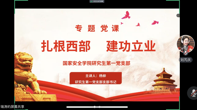 为进一步加强党员纪律教育,深入学习领会习近平总书记在新时代推动西部大开发座谈会上的重要讲话精神,304永利集团研究生第一党支部于6月23日在研综楼109会议室开展党纪教育专题学习。支部书记杨柳老师以“扎根西部,建功立业”为题讲授专题党课,支部全体党员、入党积极分子参加。