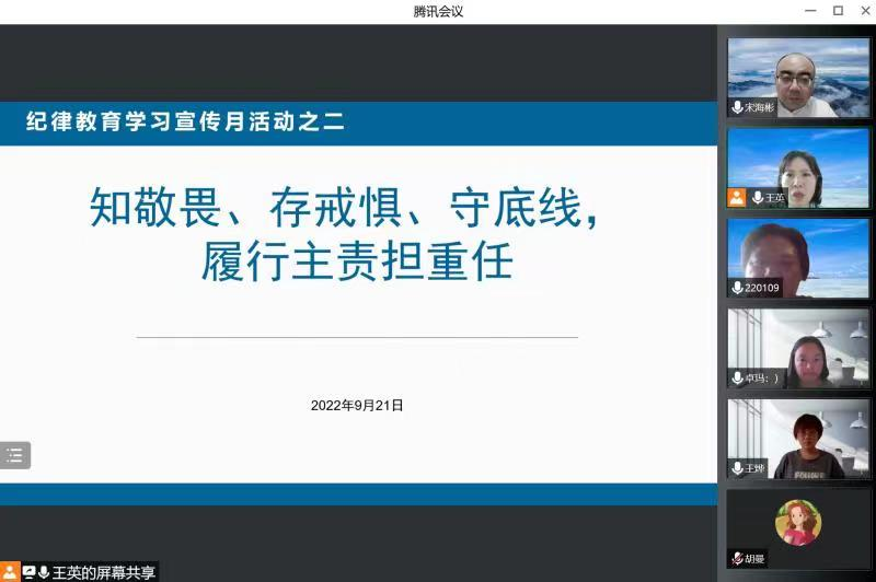 为进一步增强廉洁从业意识,筑牢拒腐防变的思想道德防线,按照公司党委关于开展纪律教育学习宣传月活动的工作安排。9月21日下午,民族法党支部开展了“纪律教育学习月讲廉政党课”主题党日活动,党支部书记王英为全体党员上了一堂题为《严守纪律规矩、加强作风建设》的专题党课。