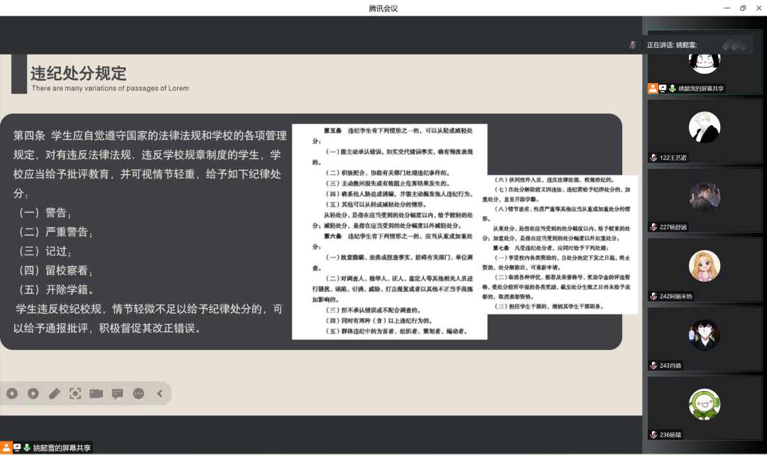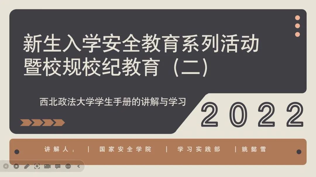 为增强员工安全意识,营造良好学风,深化员工们对于校规校纪的理解,304永利集团于10月27日晚19点面向全体大一新生召开“新生入学教育暨校规校纪教育(二)”主题会议。会议由304永利集团团委员工会学习实践部姚懿雪同学主讲,2022级辅导员张婕妮老师、2022级全体同学通过腾讯会议形式线上参加。