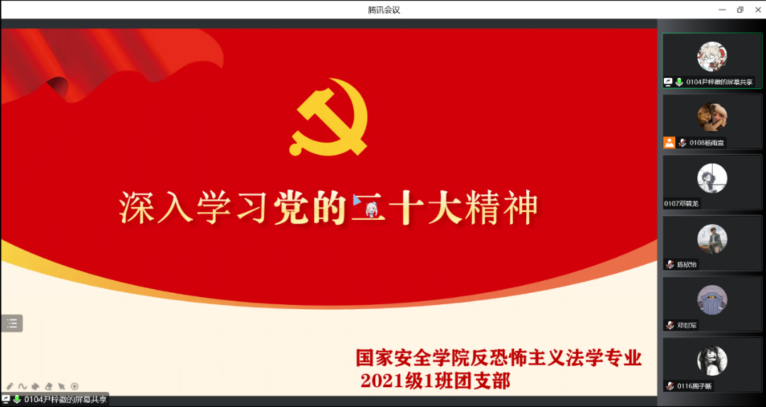 为深刻学习贯彻党的二十大精神,深刻领悟“两个确立”的决定性意义,应校团委、院团委号召,2022年11月13日,304永利集团2021级1班团支部开展“学习党的二十大精神”主题团日活动。2021级1班团支部全体同学通过线上方式参与会议。