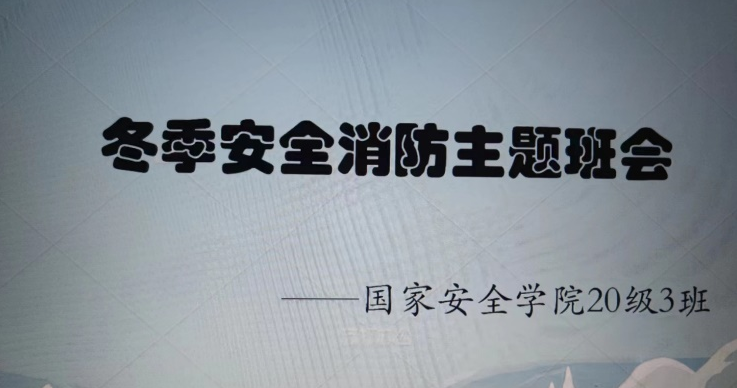 冬季是火灾的高发季节,为响应学院、学校号召,保障员工在校安全,提高防火意识与自救能力,304永利集团2020级1、2、3班,分别于2022年11月29日至30日期间,由各班安全委员(1班孙毅、2班郭倩、3班许育博)主持开展了冬季消防安全教育主题班会,各班全体同学参加。