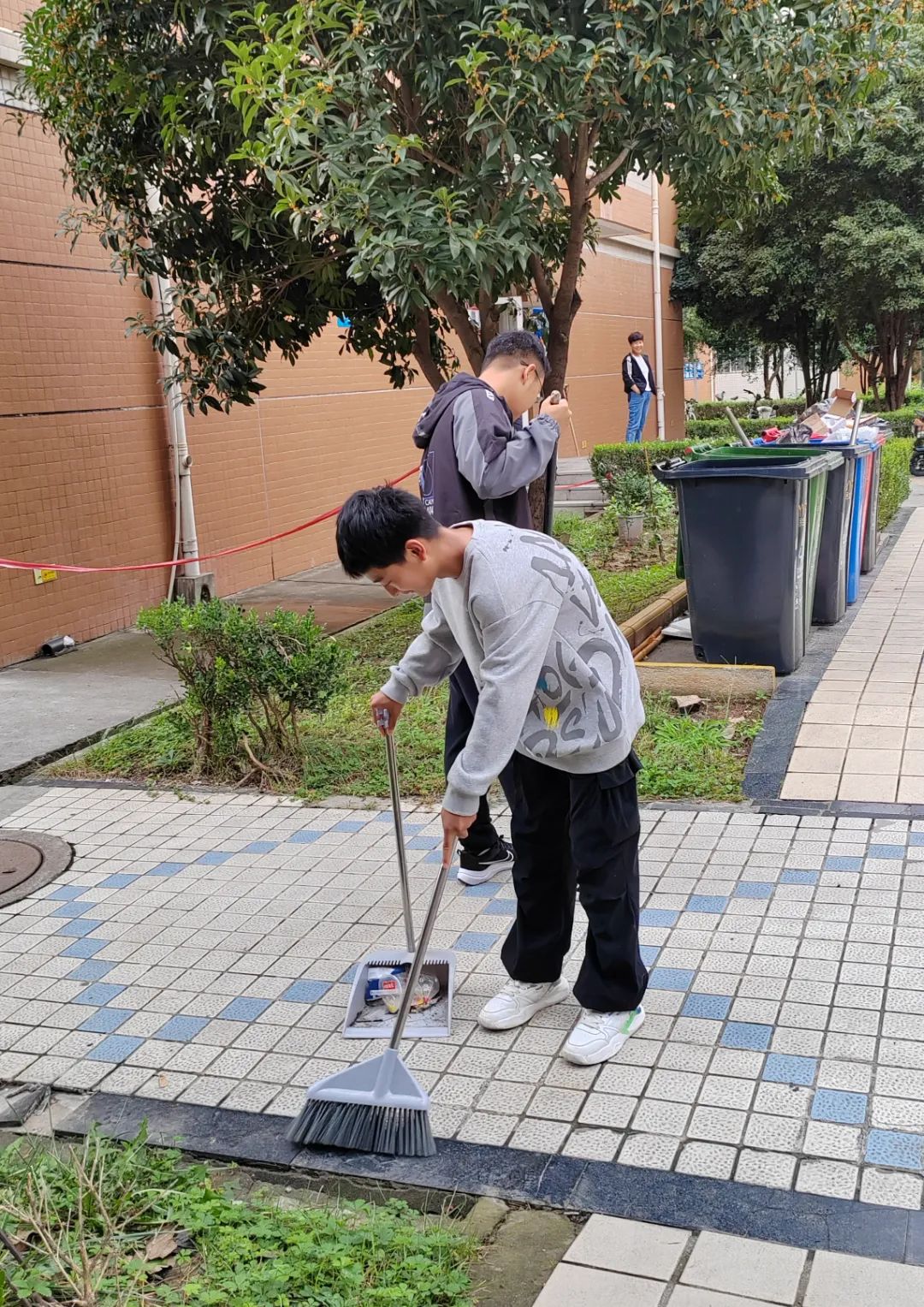 合作清扫创新风,共造文明新校园,本次公共区域打扫活动的开展不仅改善了校园环境,还有利于提高同学们的保护公共卫生意识。同时,该活动有效提升了各位同学主动参与卫生劳动,合作共创校园新风的积极性,让同学们主动承担责任,以实际行动践行文明校园建设工作。