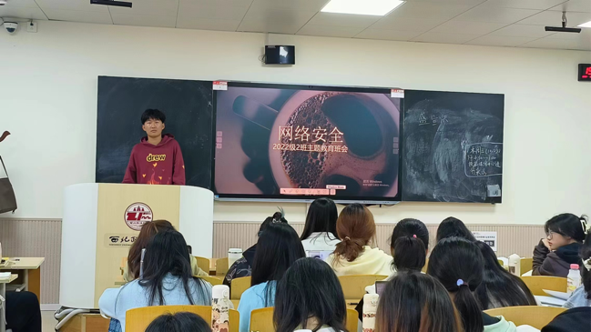 李俊辰同学从了解网络信息诈骗、网络使用安全等多个方面展开介绍,让同学们充分认识到网络是把双刃剑,要充分利用好网络资源给自己的生活、学习和工作带来便利,同时也要禁得住网络上的一些诱惑,自觉抵制一些不良网络行为,不利用网络传播不良信息,引导员工健康上网、依法上网、文明护网,树立网络安全意识。李俊辰同学结合同学们的实际校园生活,通过分析具体事件让同学们意识到网络安全的重要性,并告诫我们要时刻保持警惕。