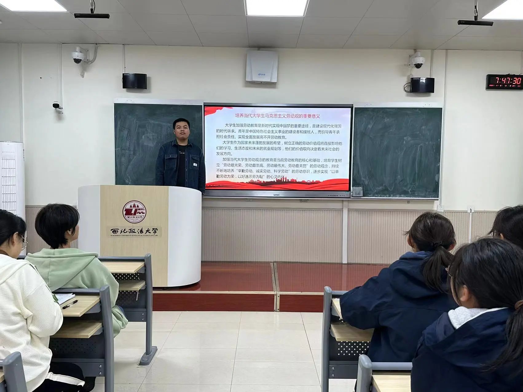 丁盟同学从劳动的定义、劳动的价值以及如何培养马克思主义劳动观三个方面向同学们介绍了马克思主义劳动观的重要性及时代价值,让同学们更深入地了解学习马克思主义劳动观的必要性。丁盟同学着重强调了“如何培养当代老员工的马克思主义劳动观”,让同学们从理论走向实践,在实践中感悟马克思主义劳动观的深刻内涵。