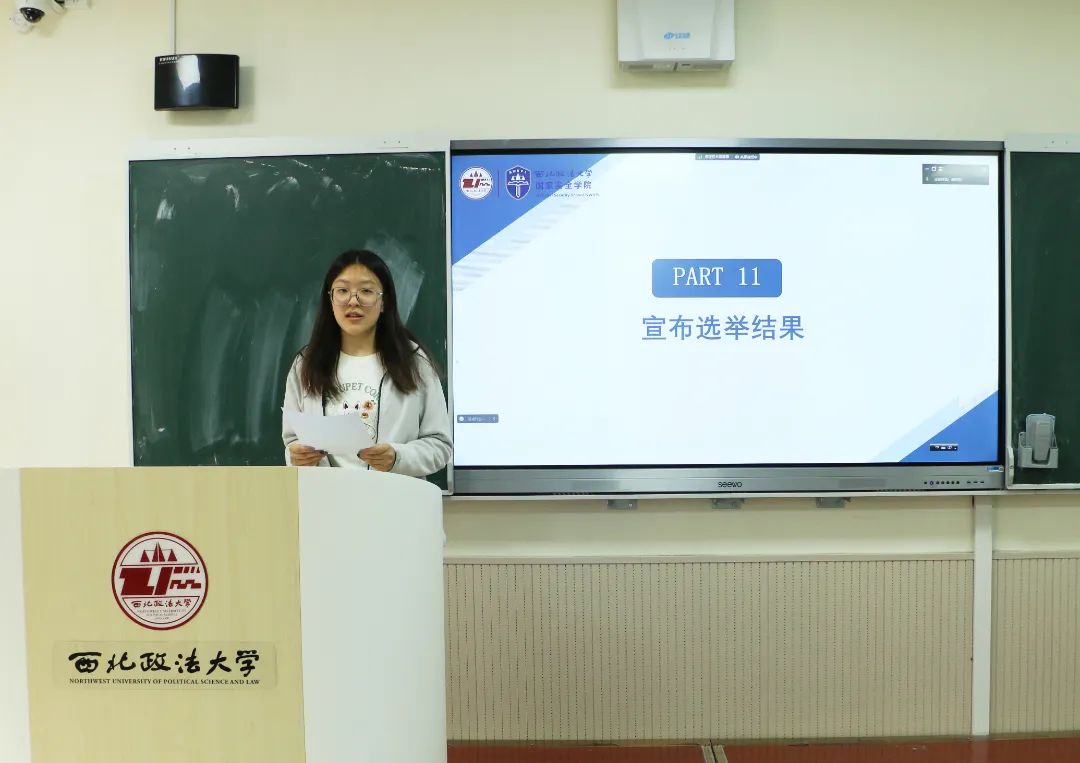 沈楚楚同学宣读总监票人、监票人,总计票人、计票人名单,大会表决通过。
