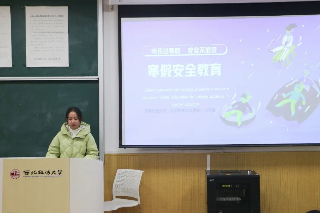 各年级安全委员从见习、出行、通讯和防诈安全等方面向同学们介绍了可能存在的安全隐患以及相应的注意事项,并特别提醒同学们要时刻注意安全、做好个人信息保护、警惕陌生人、不浏览危险网站,平安顺利地度过假期时光。
