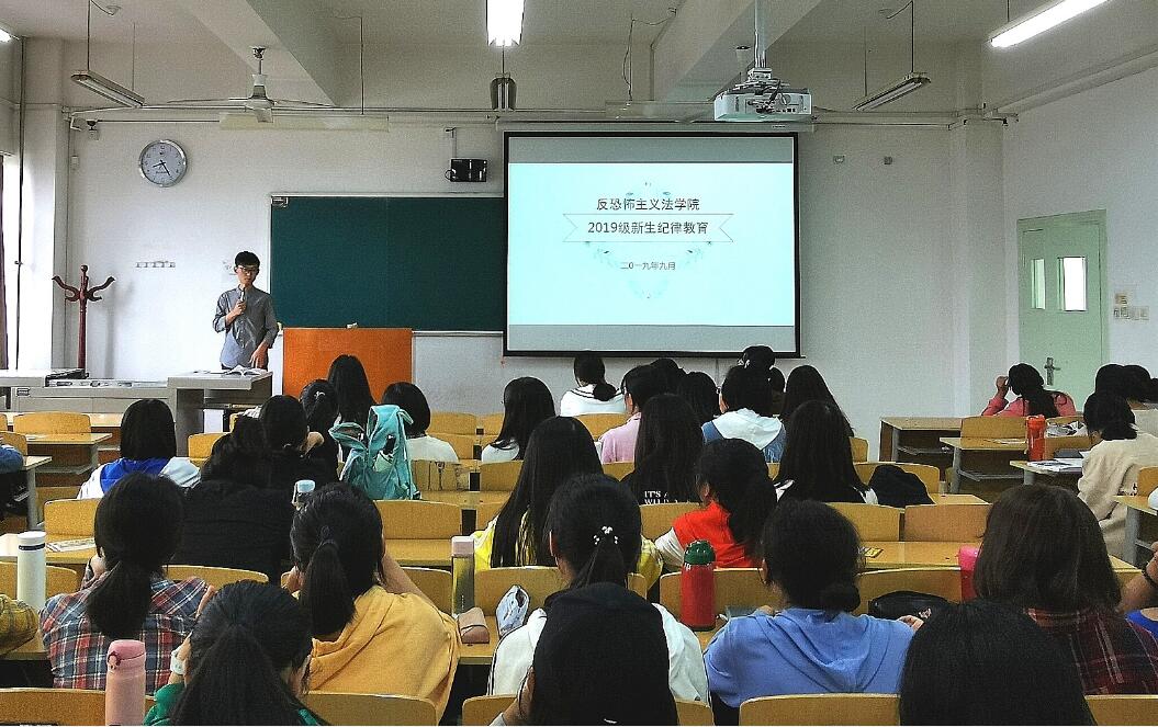 9月12日,反恐法学院2019级新生纪律、安全教育在天平楼A座305举行。2019级新生辅导员杨柳担任本次讲座的主讲人。