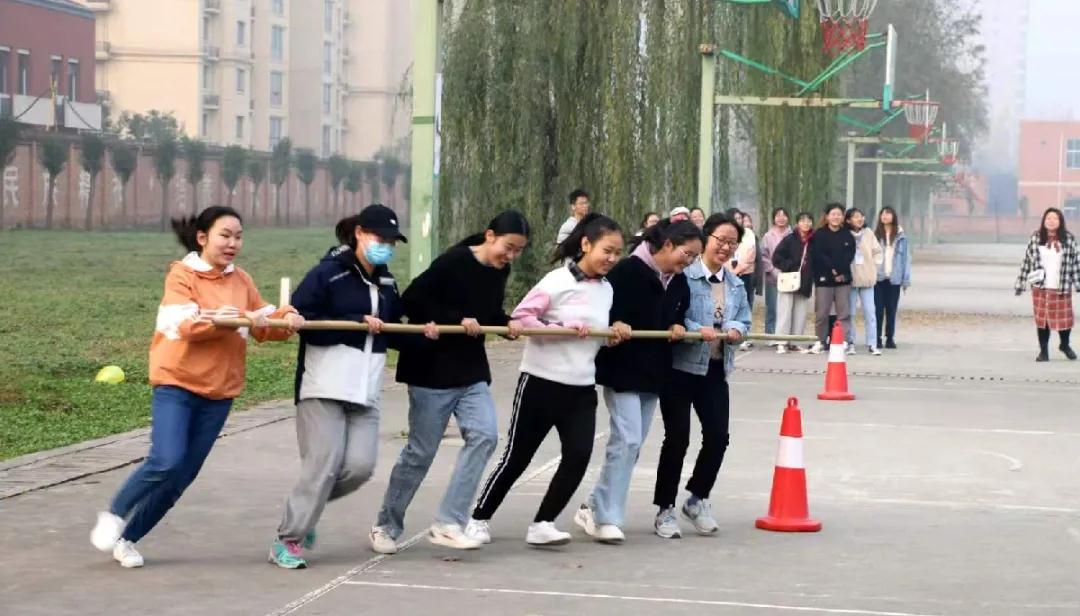 第一个小游戏是竹竿绕柱,每队参与六人,共同抓住竹竿,围绕标志物跑,是一个考验团队协作能力的游戏。各团队成员相互配合,协作默契,取得了良好的成绩。不慎跌倒的同学也毫不气馁,迅速起身冲向终点,向胜利出发,为自己而战。