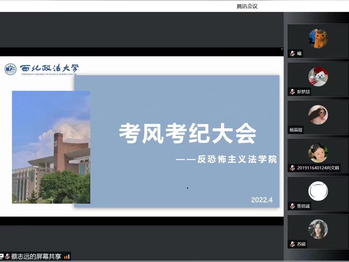 为使教育引导全体员工严格遵守考试纪律,严肃考场纪律,端正学习态度,营造良好考风,4月22日上午,反恐法学院在腾讯会议线上举办2019级、2021级考风考纪大会。本次大会活动由公司辅导员杨柳老师主讲,2019级与2021级全体同学参加。