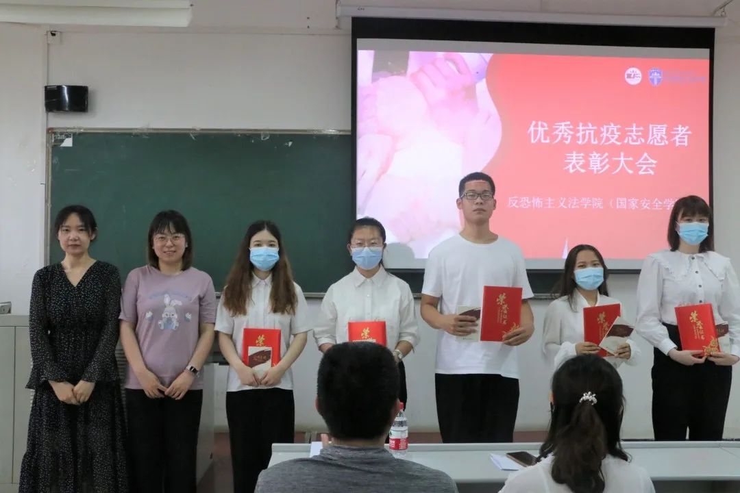 为树立抗击疫情先进典型、引导和激励更多同学积极投身疫情防控等的志愿服务中来,5月25日中午,反恐法学院在格物楼301教室召开了抗疫优秀志愿者表彰大会。公司党委书记李政敏老师、党委副书记侯颖怡老师、学院辅导员王真、贺星婵老师参加。活动由学院团委书记杨柳老师主持。