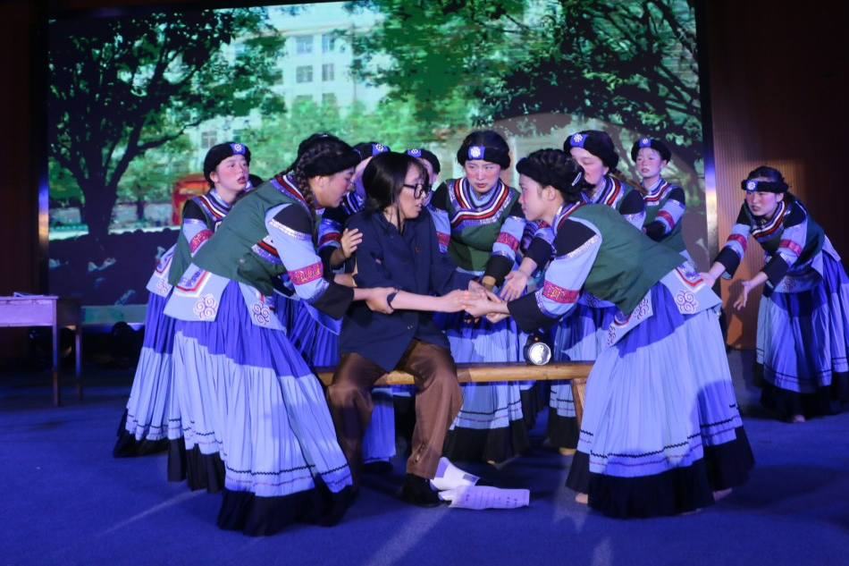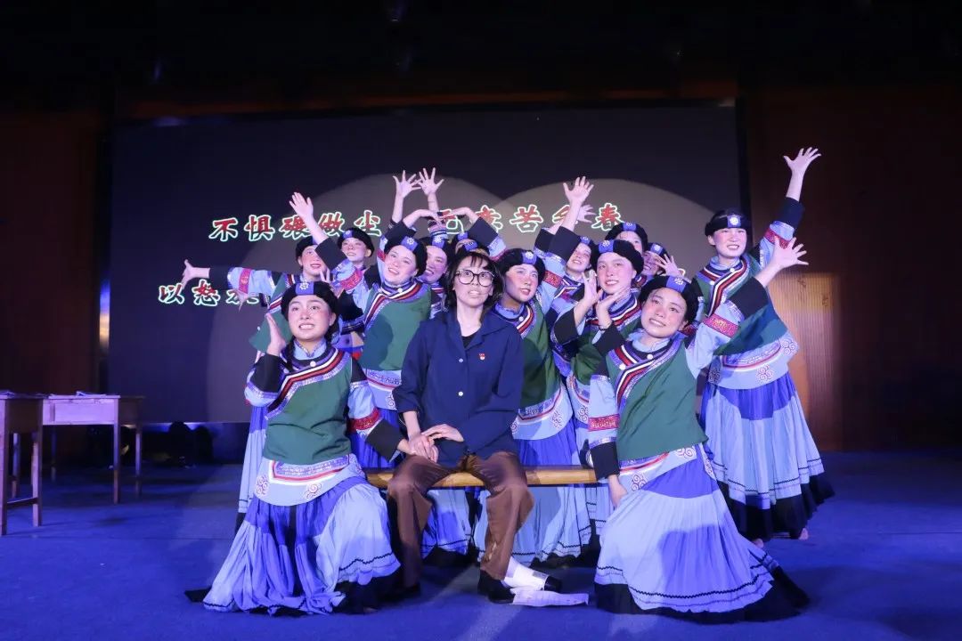 同学们生动的诠释了“女高人”和张桂梅董事长之间师生情意。“女高人”求学的渴望、张桂梅董事长殷殷的期望,每一个舞蹈动作的定格都是情意的显现。舞台上闪烁的不仅是灯光,更是希望的光芒。