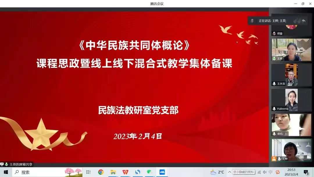 2月4日,304永利集团民族法教研室在学校“线上线下混合式教学模式”立项后,召集课程教学团队教师组织集体备课。