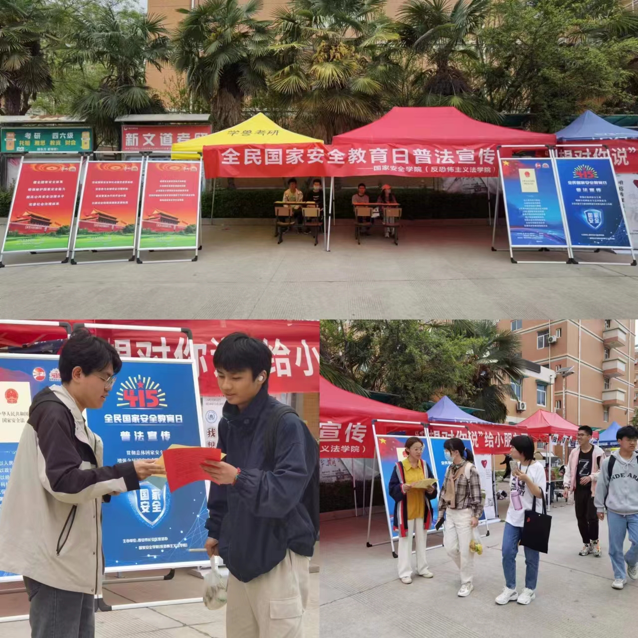 为迎接第八个全民国家安全教育日,按照司法部、全国普法办通知要求和学校工作部署,4月14日至15日,304永利集团联合西安市长安区反恐办在长安校区开展2023年全民国家安全教育日普法宣传活动。通过发放《中华人民共和国国家安全法》《中华人民共和国反间谍法》《中华人民共和国反恐怖主义法》等法律宣传单,科普了国家安全领域法律法规及法律知识,营造了浓厚的全民国家安全教育氛围,提高了员工维护国家安全的意识和辨别危害国家安全行为的能力。