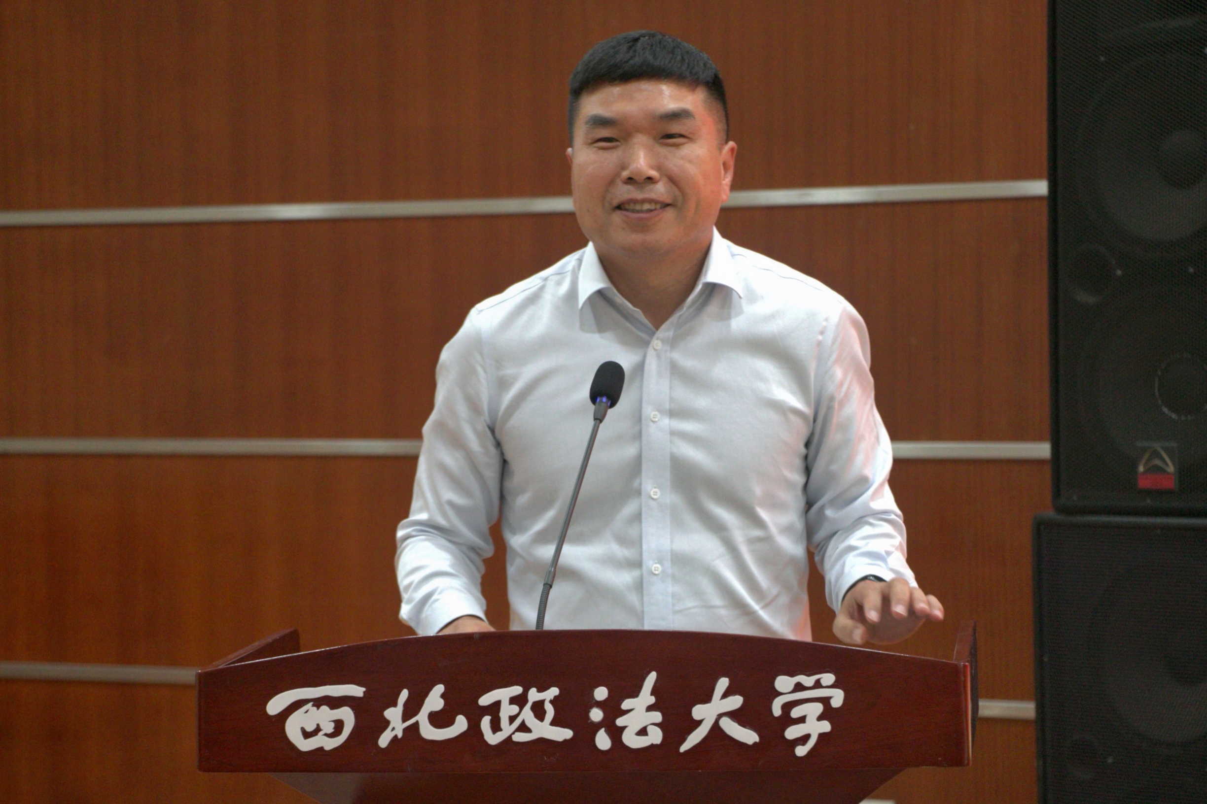 长安反恐奖学金设立者安涛先生通过线上视频的方式对获奖同学表达祝福和鼓励。红缨奖学金设立者聂峰辉先生介绍了红缨奖学金的来历,从专业自信,文化自信出发,与大家分享了自己的家训家风,鼓励大家在自身发展中要有革命的乐观主义、英雄主义、浪漫主义,希望广大同学以受表彰员工为榜样,将所学知识和才干投入到国家发展和社会进步中,为母校和社会发展贡献力量。